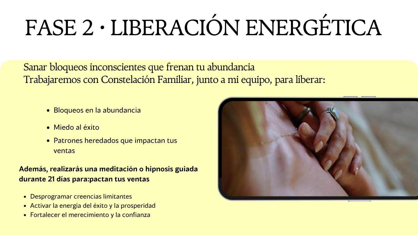 Este no es solo un programa de marketing. Es un proceso profundo donde alineamos energía, mente y acción, porque tu negocio es una extensión directa de tu energía.
