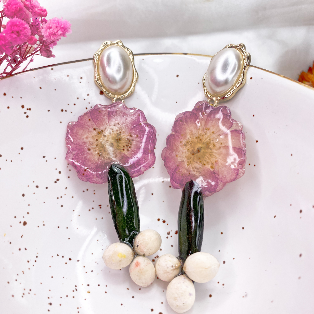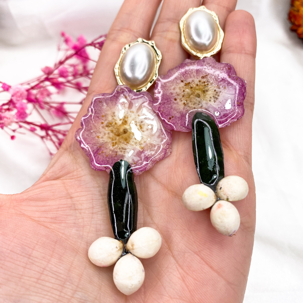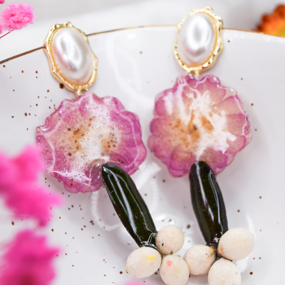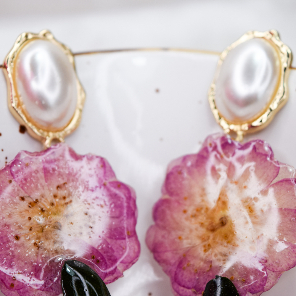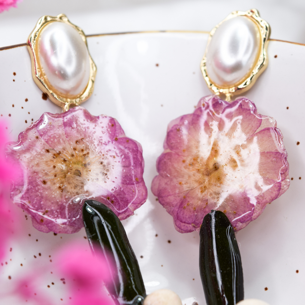• Pendientes de resina hechos a mano con flores reales