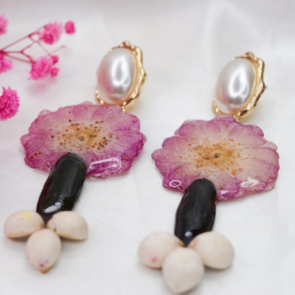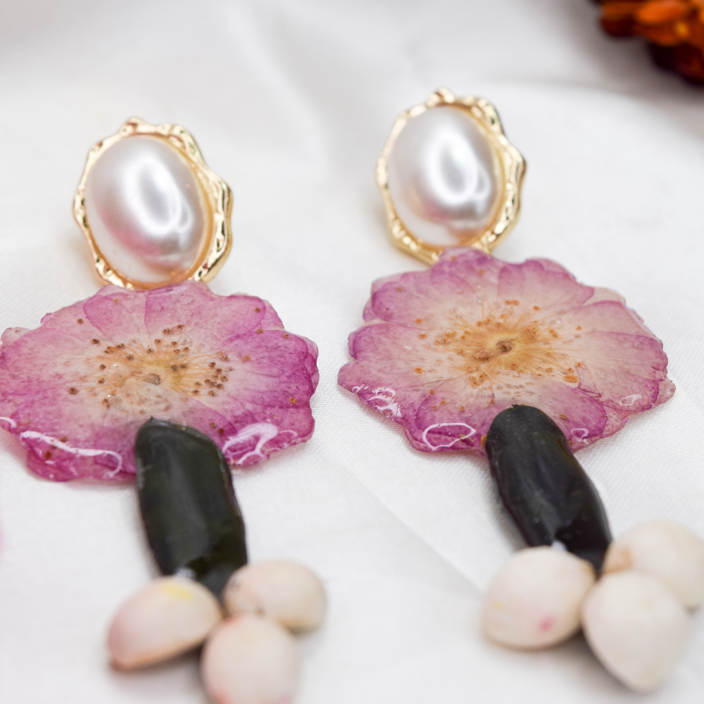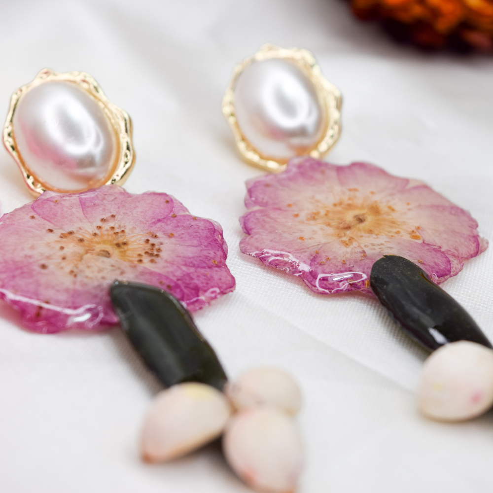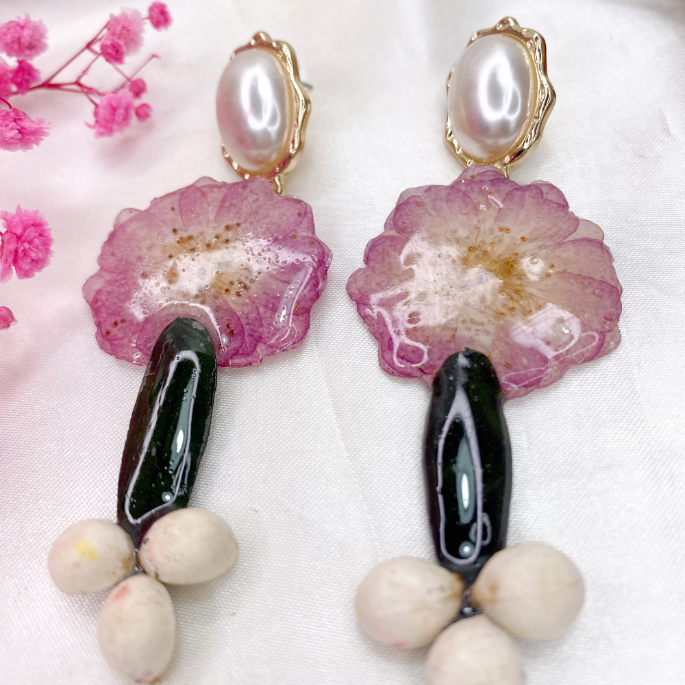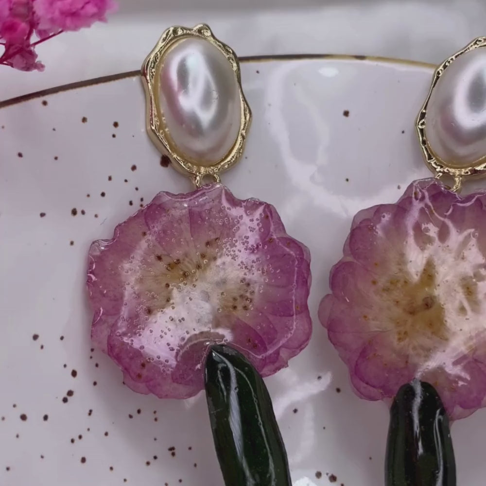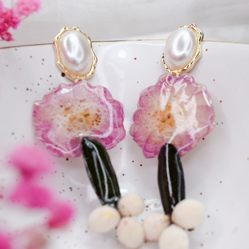 • Pendientes de resina hechos a mano con flores reales