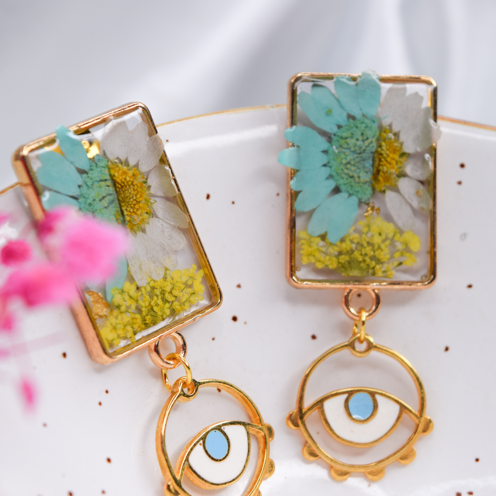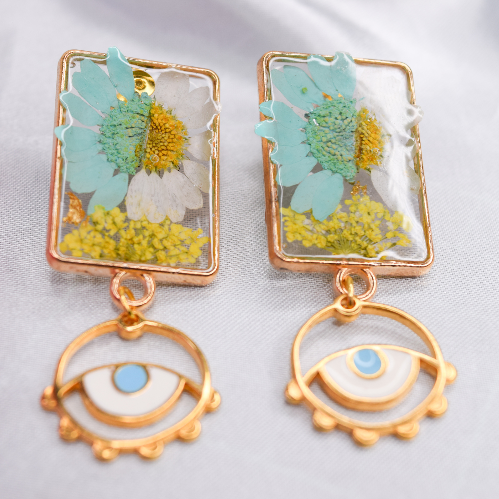 • Pendientes de resina hechos a mano con flores reales